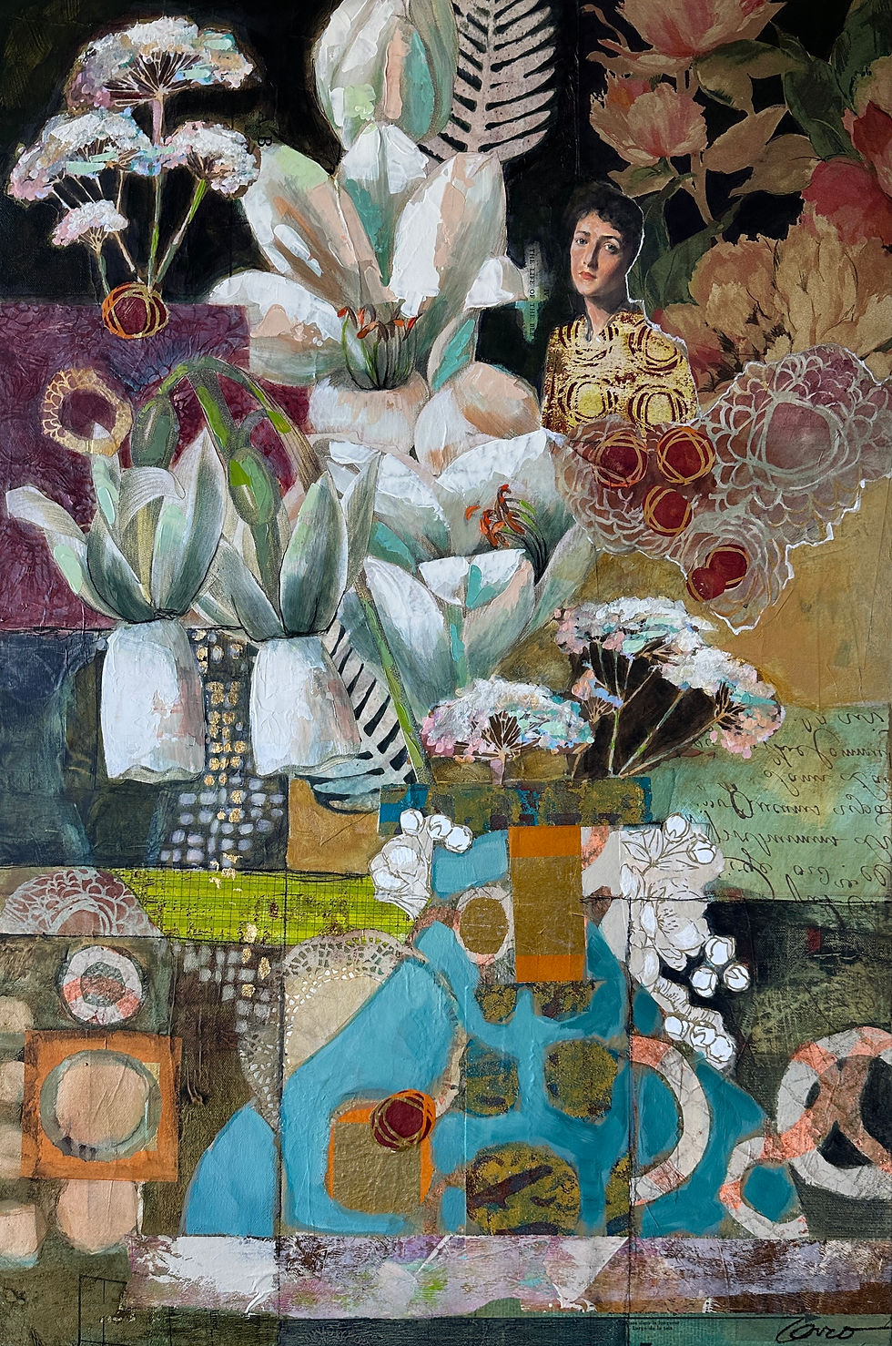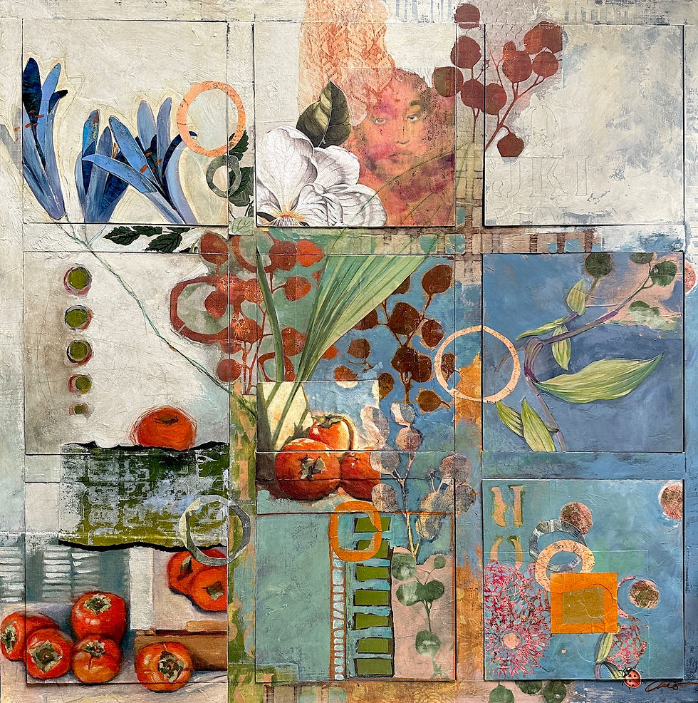 Realistic, abstracted, torn papers, colorful paints, marks, decorative vases, birds, fruit...things I add into my mixed media florals and brings me so much joy to paint them! Hopefully that comes through in my mixed media art pieces and you find yourself loving one or two...or a whole garden of my painted florals that you can't resist purchasing for your very own home.